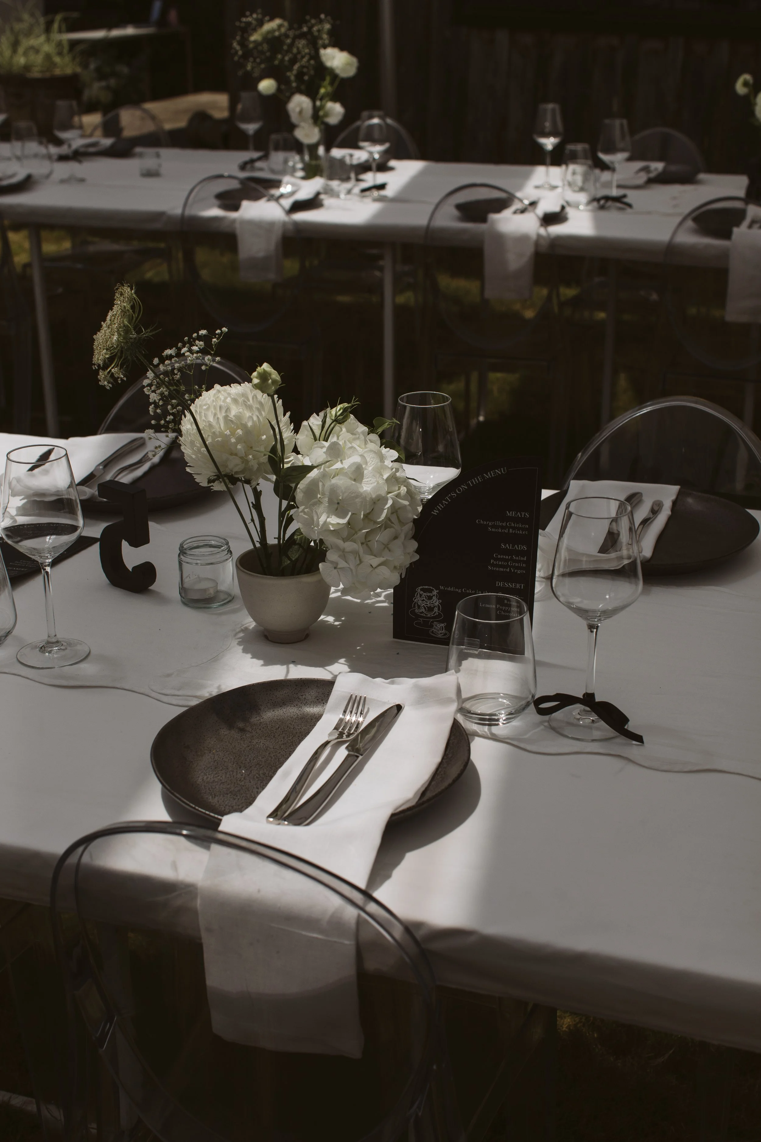 We use our trusted supplier Tble. Linen for all of our dressware. They have an extensive and premium range of knapkins, tablecloths and runners that will elevate and compliment our decor. We streamline the process by ordering, delivering and collecting all items from Tble. Linen - with no mark up in price. See their website for more details and let us know if you would like to include their linen in your order.